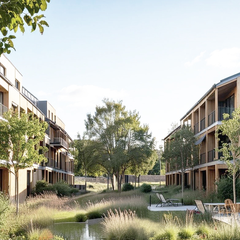 Situé à Angers, dans le quartier de la Justice, à proximité immédiate du parc Saint-Augustin, ce projet de 49 logements se veut exemplaire et innovant sur les thématiques du carbone et de la biodiversité.