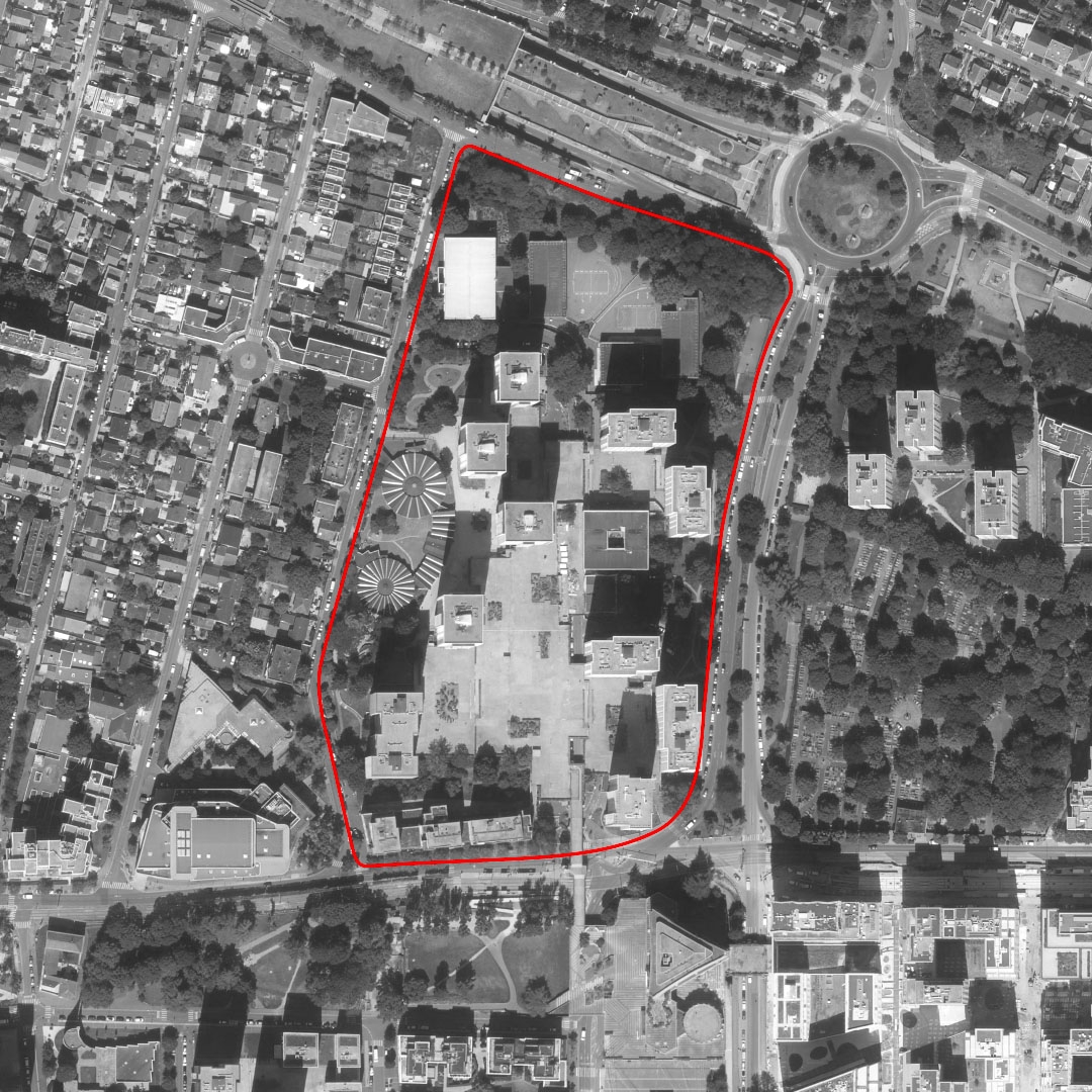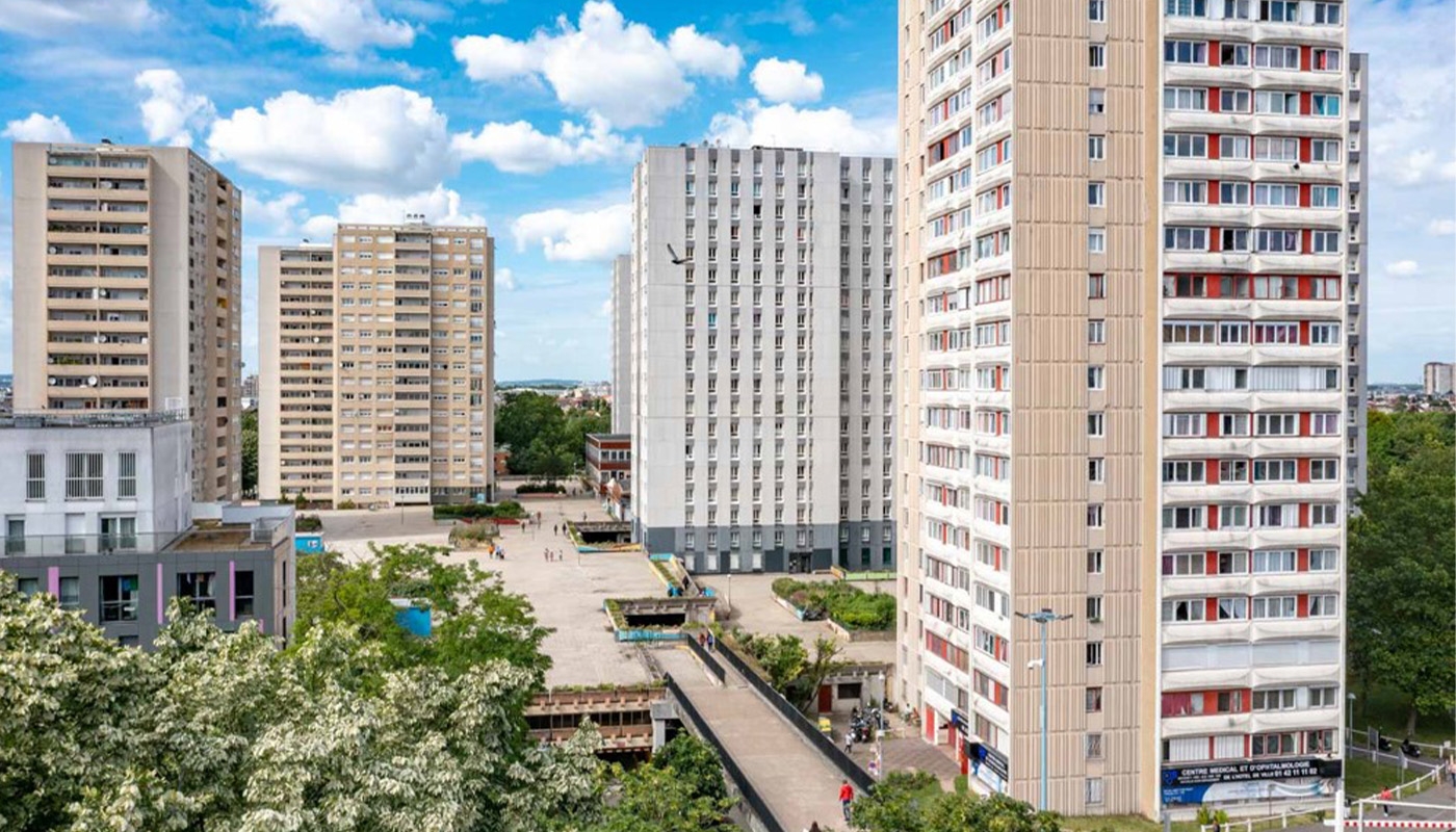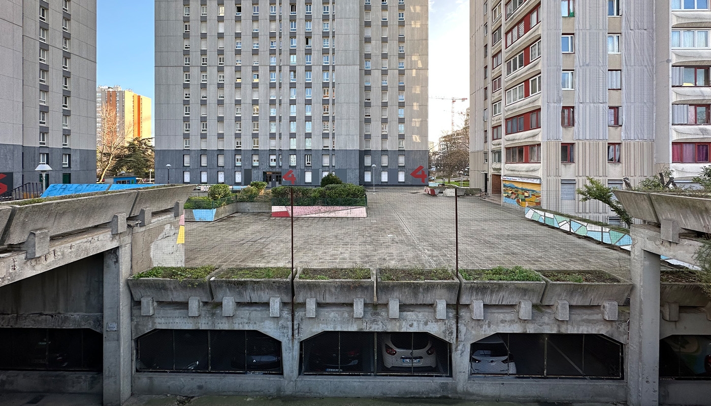 Aménagé entre 1967 et 1972 sous l’égide de Michel Holley, le quartier Paul Éluard a été construit selon les principes d’un urbanisme de dalle basé sur la séparation des fonctions de la ville en couches superposées. Mais aujourd’hui, la dalle (qui accueille 2 niveaux de parking) est située à plus de 5 m du sol naturel et est desservie par des rampes et escaliers massifs. Elle isole et créée une rupture spatiale avec les quartiers alentours. Trois enjeux émergent de ce constat :