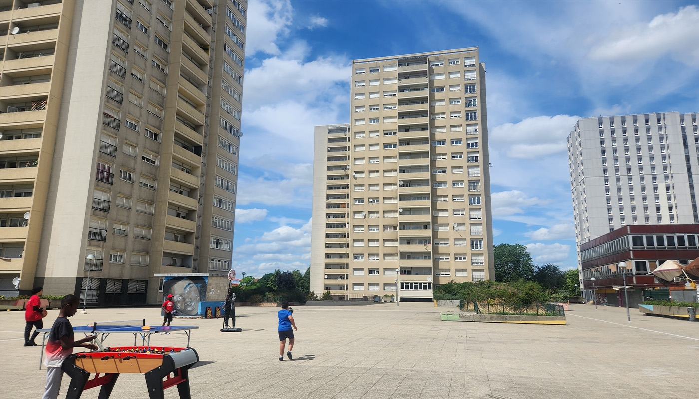 • Développer aux cœurs du quartier des nouveaux usages, pour rendre la dalle (délaissée à l’heure actuelle) à ses habitants au travers d’aménagements conçus pour toutes les générations, accessibles à pied et aux mobilités douces et organisés de manière à simplifier les circulations. La typologie de la dalle peut devenir support d’usages singuliers : balcons en débord, amphithéâtres, toboggans pour petits et grands, murs d’escalade, pentes en sol naturel support de végétation, etc.